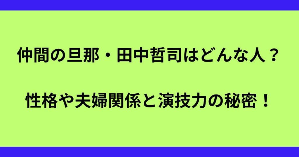 仲間由紀恵さんの旦那である田中哲司さんについて、皆さんはどのくらい知っていますか? 実は、田中哲司さんは日本を代表する名バイプレイヤー(主役を支える脇役の俳優)として知られる実力派俳優なんです。 今回は、田中哲司さんのプロフィールや経歴、性... -