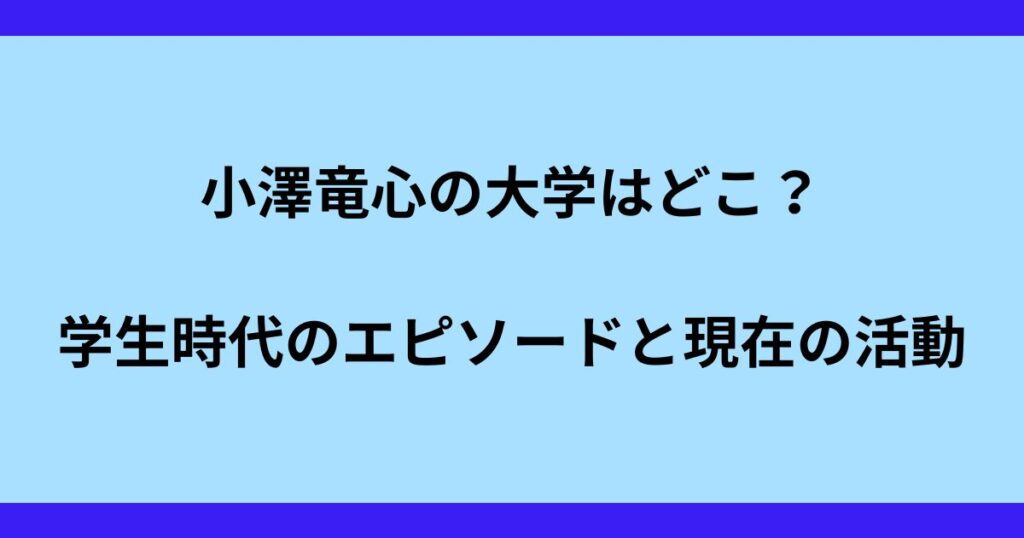 小澤竜心の大学はどこ?学生時代のエピソードと現在の活動を徹底調査!