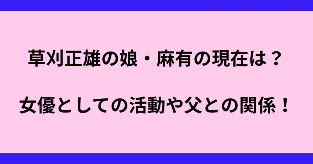 草刈正雄の娘・麻有の現在は?女優としての活動や父との関係を徹底調査!