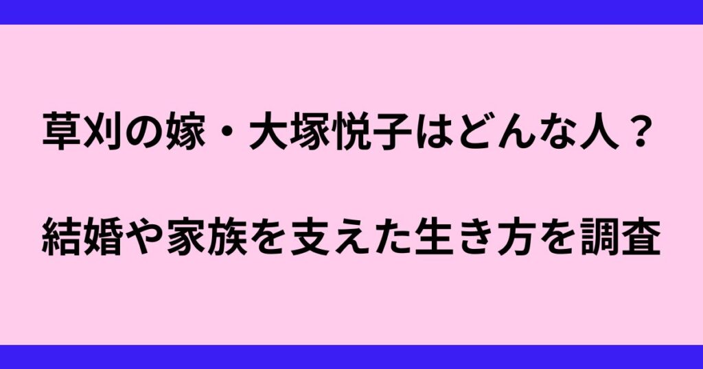 草刈正雄さんの妻として知られる大塚悦子さん。 元モデル・女優として活躍していた彼女は、草刈さんとの結婚後、どのような人生を歩んできたのでしょうか? 今回は、大塚悦子さんのプロフィールから、草刈正雄さんとの出会い、そして家族を支えてきた生き... -