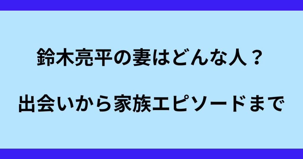 俳優として数々の作品に出演し、そのストイックな役作りでも知られる鈴木亮平さん。 そんな彼を支える妻とはどんな人物なのでしょうか。 この記事では、鈴木亮平さんの妻の人物像から、二人の馴れ初め、そして現在の家族との関係までを詳しく紹介します。 ... -