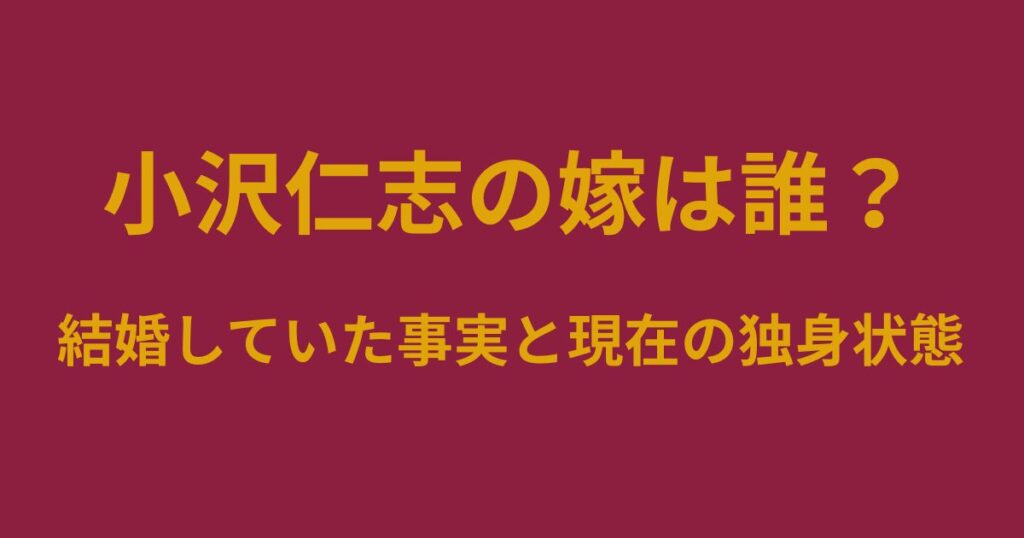 小沢仁志さんについて調べる中で、「嫁は誰?」「そもそも結婚していたの?」と気になり、検索した人は少なくないはずです。 長年第一線で活躍し続けている一方で、私生活については語られる機会が少なく、独身のイメージを持っていた人も多いのではないで... -