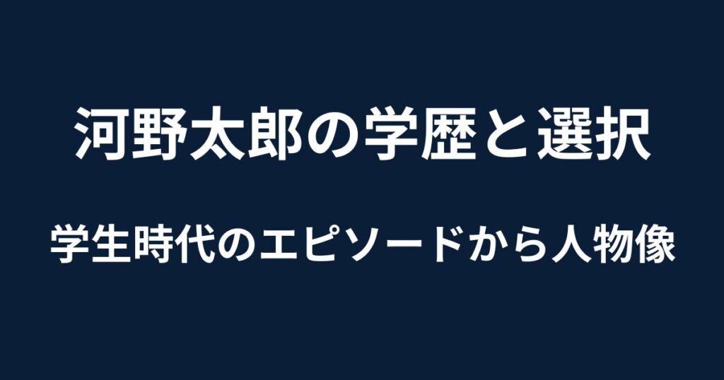 河野太郎の学歴はどうなっているのか。出身校や大学名を知りたいだけでなく、どんな学生時代を過ごし、そこからどんな人物像が見えてくるのか、そう思って検索した人も少なくないと思います。 とくにここ最近は、政治家の経歴や発言が注目されやすく、学歴... -