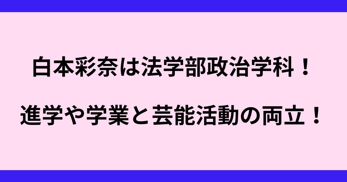 今回は、白本彩奈さんの大学生活や進学の背景、芸能活動との両立について詳しく見てきました。