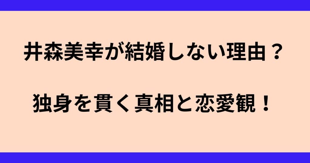 タレントとして長年第一線で活躍している井森美幸さん。 「なぜ結婚しないのか?」とたびたび話題になりますが、実際のところ彼女はどのような恋愛観を持っているのでしょうか。 この記事では、井森美幸さんが結婚しない理由や過去の発言、独身キャラが定... -