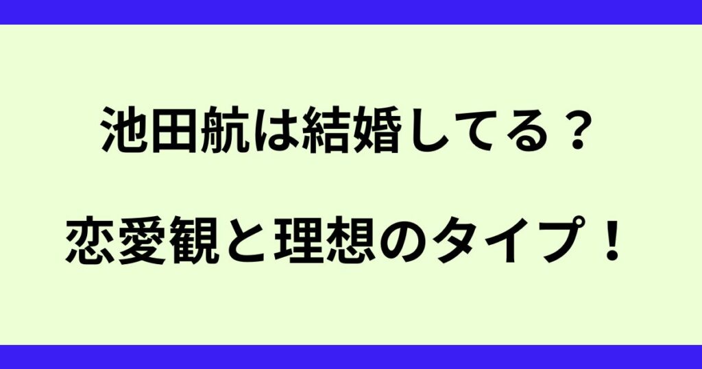 池田航は結婚してる?恋愛観と理想のタイプについて徹底調査!
