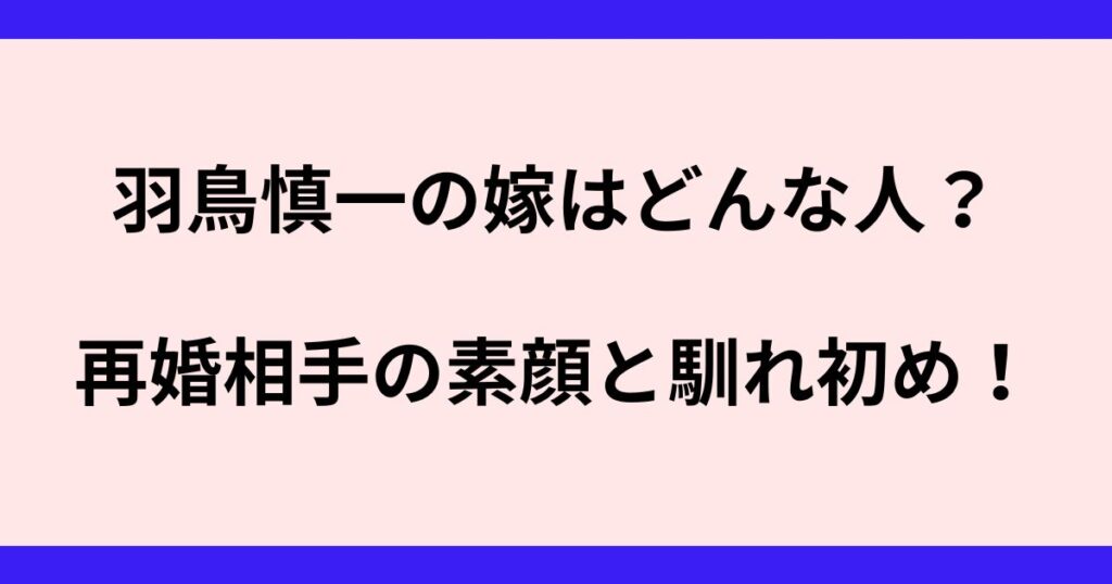 羽鳥慎一の嫁はどんな人?再婚相手の素顔と馴れ初めを徹底調査!