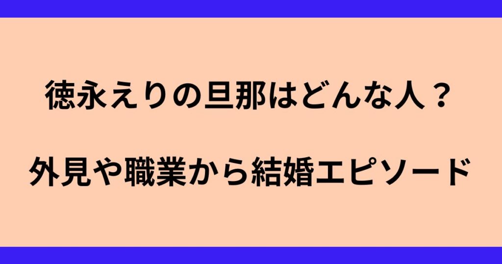 徳永えりの旦那はどんな人?見た目や職業から結婚エピソードまでを徹底調査!
