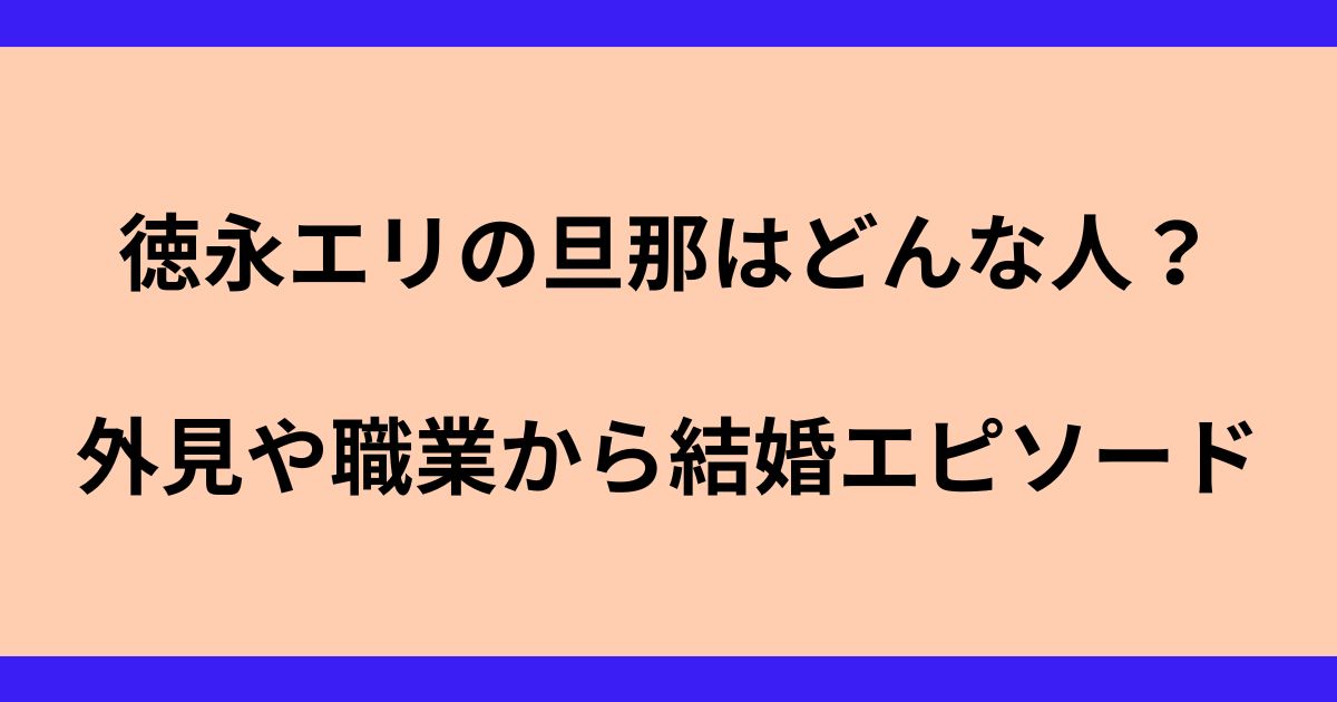 調査してみたら、徳永えりさんの旦那さんは心根の優しい素敵な方だったので、ぜひ最後まで読んでいってください!