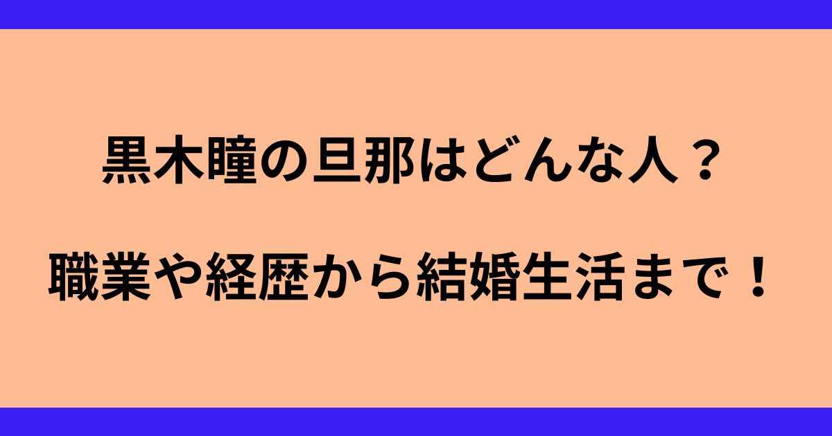 黒木さんは「夫には感謝しかない」と語り、「隣にいてくれないと困る」存在だと表現しています。
