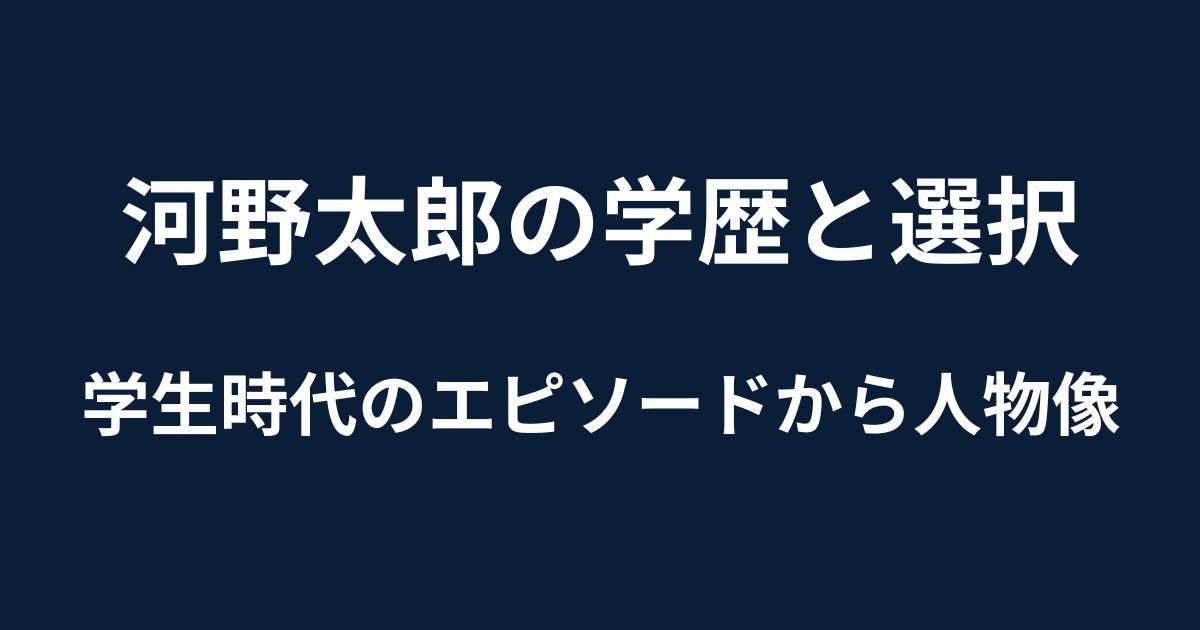 学歴だけを切り取ると断片的に見えがちですが、学生時代のエピソードまで含めて考えることで、河野太郎という人物の輪郭はよりはっきりしてきます。