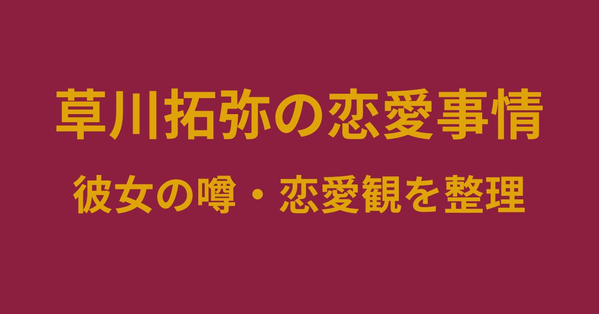 この記事では、草川拓弥さんの恋愛事情について、彼女や結婚に関する公式情報の有無を整理しつつ、過去に出た噂の扱われ方、さらに本人が語った恋愛観までを、分かりやすくまとめていきます。