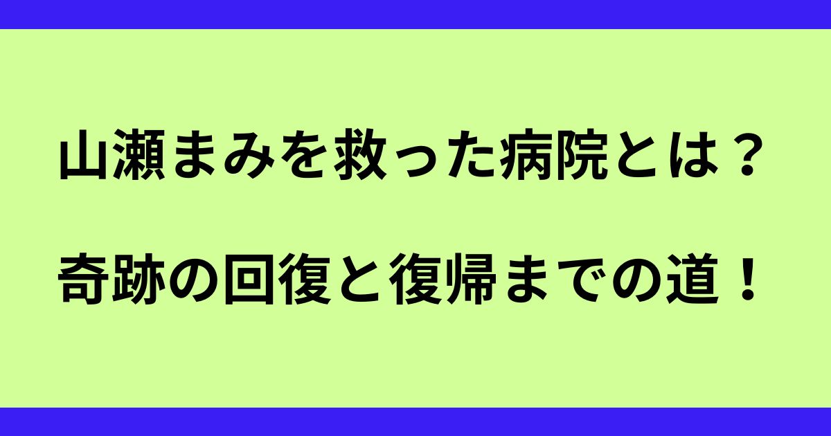 山瀬まみさんを救った病院は、高度な医療技術と献身的なサポートで奇跡的な回復を支えました。