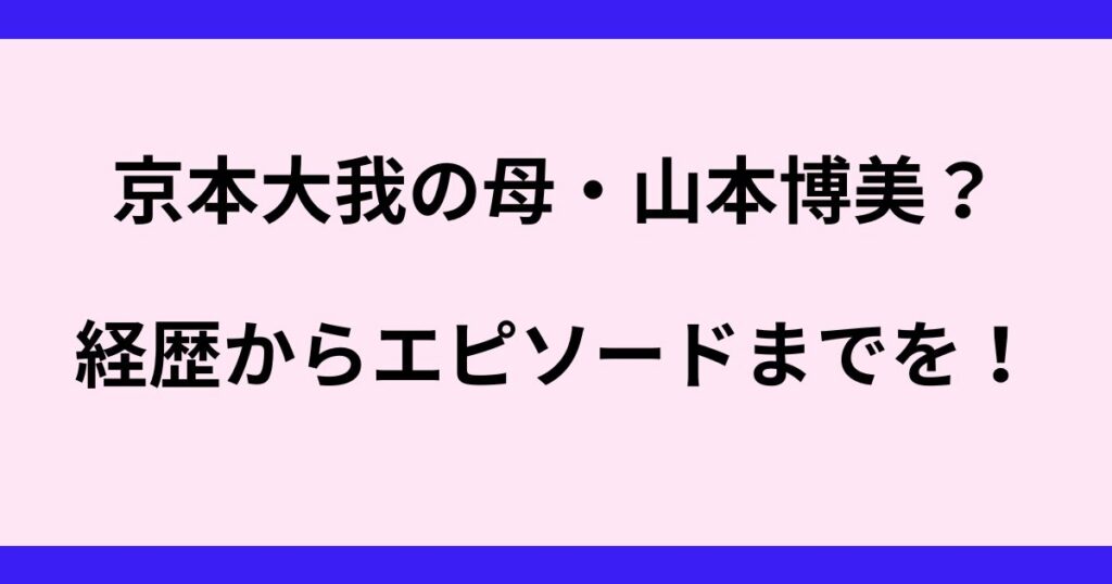 京本大我の母・山本博美はどんな人?経歴からエピソードまでをリサーチ!人気アイドルグループSixTONESのメンバーとして活躍する京本大我さん。 そんな京本大我さんですが、母親である山本博美さんはどのような人物なのでしょうか。 今回は、京本大我さんの母親である山本博美さんについて、その経歴やエピソードをリサーチして...