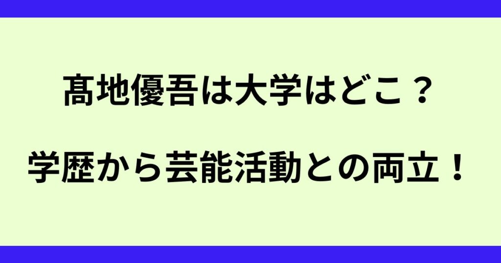 髙地優吾は大学はどこ?学歴から芸能活動との両立までをリサーチ!人気アイドルグループSixTONESのメンバーとして活躍する髙地優吾さん。 そんな髙地さんですが、実は大学卒業の学歴を持つことをご存知でしょうか。 今回は、髙地優吾さんの学歴、特に大学時代の詳細や、芸能活動との両立について詳しくリサーチしてみまし...