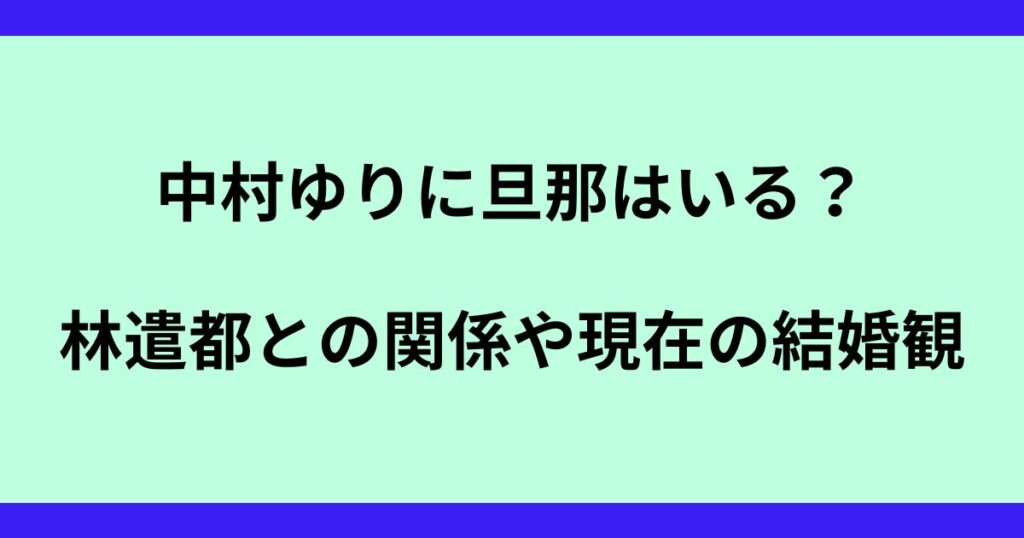 女優として落ち着いた雰囲気と確かな演技力で多くの作品に出演し活躍中の中村ゆりさん。 そんな中村ゆりさんの結婚や恋愛事情が気になりますよね。 実は、中村ゆりさんには「旦那がいる」という噂が広まっていたのをご存知でしょうか? また、俳優の林遣都... -