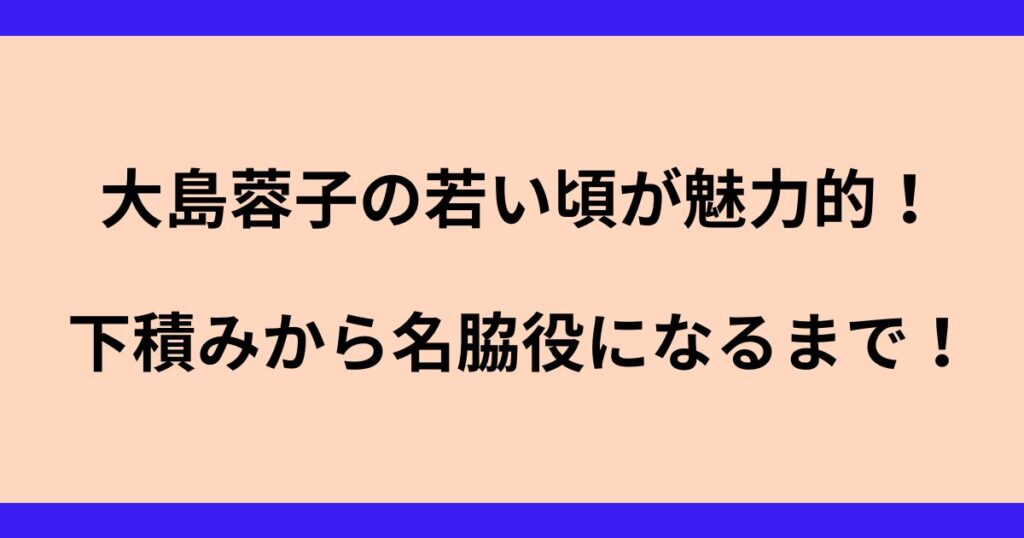名脇役として知られる大島蓉子さん。 その若い頃の姿が魅力的すぎると話題になっています。 今回は、大島蓉子さんの若い頃から現在までの軌跡を徹底調査しました。 下積み時代のエピソードや、名脇役として成長していく過程など、興味深い情報が満載です。... -