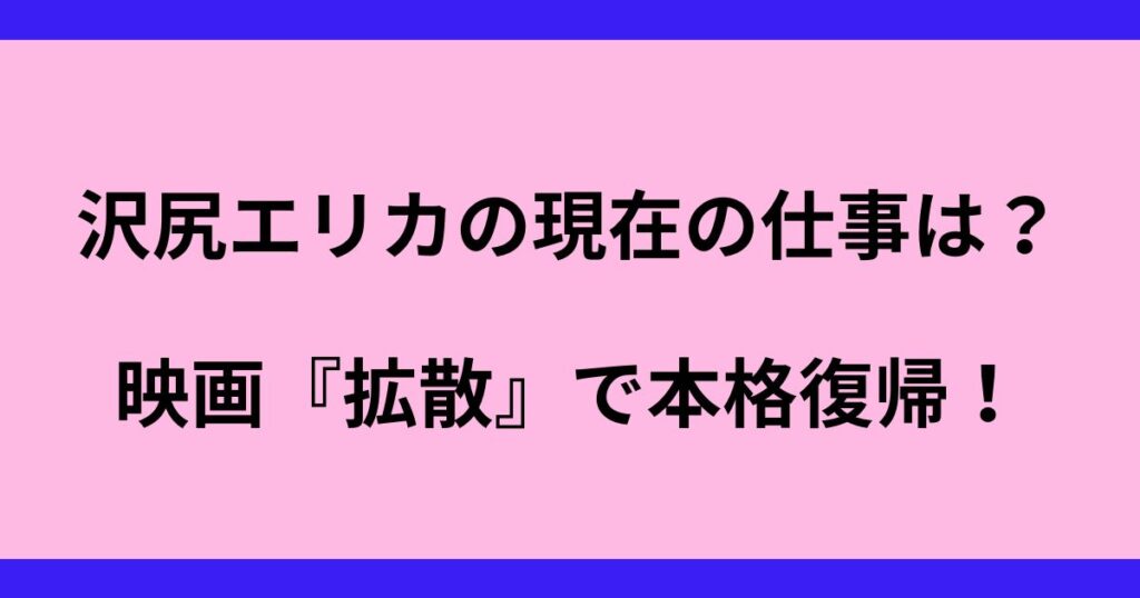 かつて日本を代表する女優として多くのヒット作に出演した沢尻エリカさん。 活動休止以降、その動向に注目が集まっていましたが、ついに映画『拡散』(2026年2月公開予定)で本格的に女優復帰を果たすことが明らかになりました。 今回は、沢尻エリカさんの... -