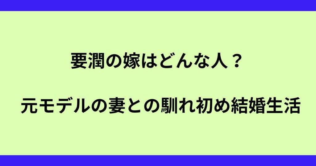 要潤の嫁はどんな人?元モデルの妻との馴れ初めや結婚生活を徹底調査!