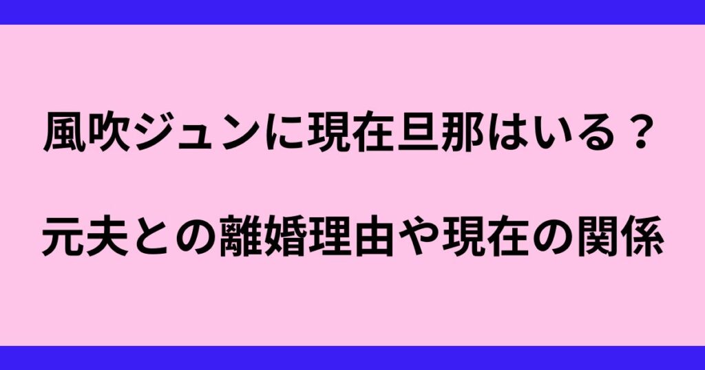 女優として活躍し続ける風吹ジュンさん。 その私生活、特に結婚生活について気になる方も多いのではないでしょうか。 今回は、風吹ジュンさんの現在の結婚状況や元旦那との関係、そして離婚後の生き方について詳しく見ていきます。 風吹ジュンに現在旦那は...