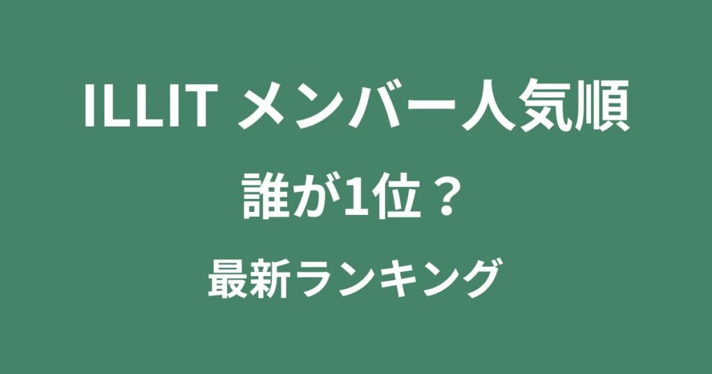 デビューから一気に注目度を高めている5人組ガールズグループ・ILLIT(アイリット)。 「メンバーの人気順は誰が1位?」「日本と韓国で推され方が違うって本当?」と気になっている方も多いはずです。 この記事では、日本での人気順を中心に、韓国での評価...