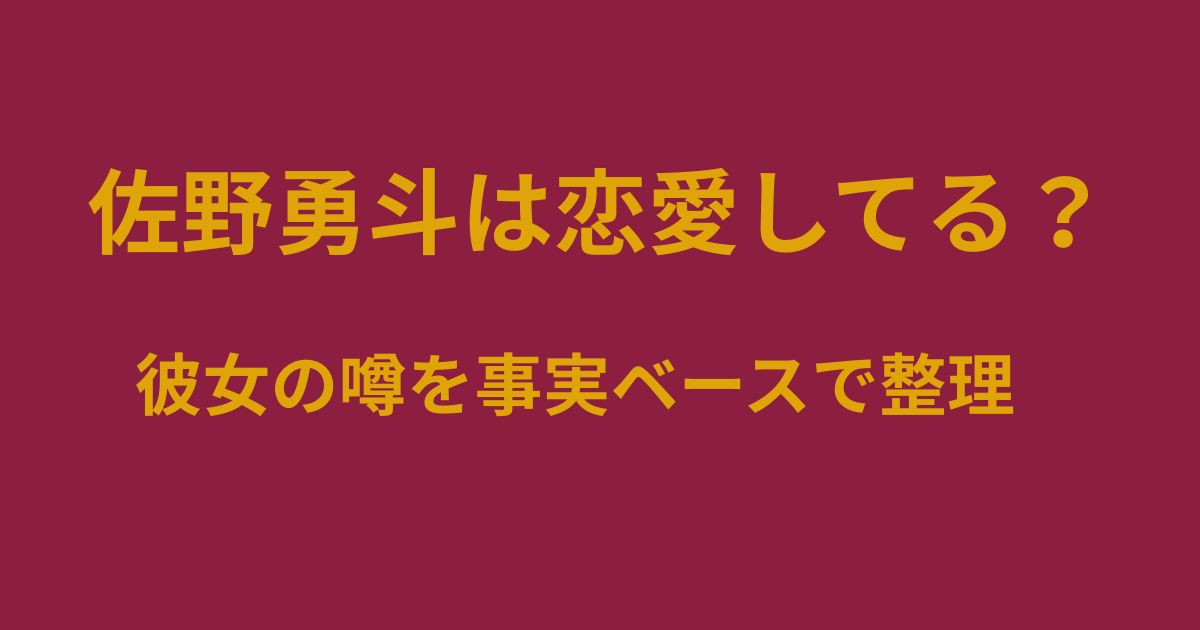 テレビや映画への露出が増えるにつれ、「佐野勇斗さんは恋愛しているの?」「現在、彼女はいるの?」といった恋愛に関する検索も目立つようになっています。