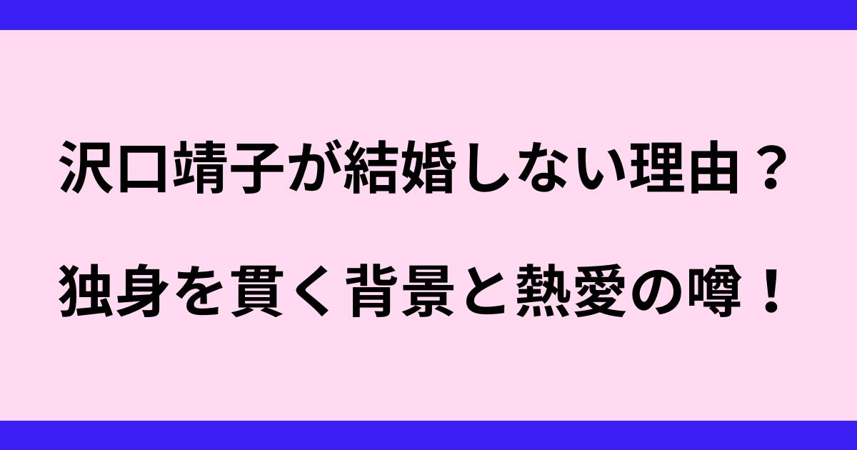 今回は、沢口靖子さんが結婚しない理由と、過去の熱愛の噂について徹底調査しました。